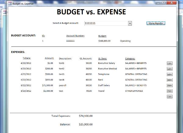 he Budget vs. Expense report